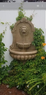 The fountain is very pretty agains our house! I'm going to antique it a bit more but other than that we like it. We still need to set it up so I'm sure will love it more. It's light weight so we're able to move it with ease. ????