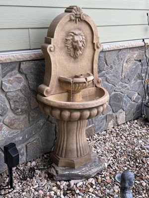 I purchased the Savanna Lion fountain to replace a similar outdoor floor fountain I love and own for 15 years. This fountain is aesthetically pleasing and at 58" high, it's perhaps the tallest fountain you can purchase without requiring special delivery arrangements. At 50 pounds, it's surprisingly lighter than I expected. I set up the fountain by myself and then, asked my husband to help me relocate it to its final destination in the outdoor garden area. I reside in the Midwest thus the fountain will remain outside and will be properly winterized to ensure it lasts for many years to come. I've winterized the other fountains on my property and experienced no issues. This is a two-piece fountain requiring the upper portion to be placed on top of the lower basin. Hence, it's important to know that any adjustments to the water pump or lights will require the removal of the upper portion of the fountain as it lacks a rear access panel. Based on the final location of the fountain and the amount of water in its basin, this could be a challenging task. A rear-access panel is a common practice for these types of fountains as in another John Timberland's Modern Sphere Curve Cascading 39 1/2" Fountain which I also own. I was surprised this fountain was not equipped with this necessary panel. Regarding the lights, I wish they would be powered separately from the water pump in order to incorporate a timer into their operation. Having the lights on 24 hours a day may result in a faster malfunction. During daytime hours, the lights are not as striking or impactful. It would also be more dramatic to emphasize the water stream coming out of the lion's face as opposed to the bottom of the smaller shell-like basin. This is mostly a design preference on my part and not a product flaw. Finally, the sandstone finish was not as pleasing as expected. I spray-painted the fountain using Rust-Oleum Metallic Paint & Primer in One, Shade: Burnished Amber in Flat finish. It looks fantastic! With my previous 15-year-old fountain, I had to re-touch and re-paint it so I felt very comfortable painting this new fountain too. Overall, I recommend this fountain for its aesthetics and height yet be aware of the challenging access to the pump and lights. The water stream is very calming. I just set up the fountain and look forward to many hours of relaxation.