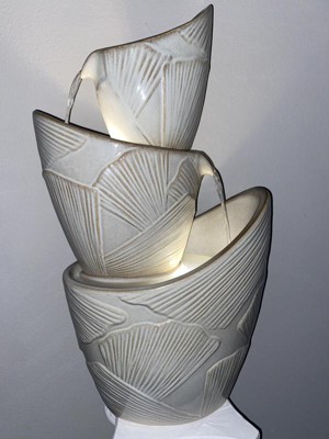 Three Urn 30" High Large Coastal Modern Indoor Outdoor Decor Faux Stone Floor Fountain with Light LED Cascading Outside Garden Patio