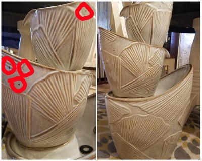 It came with visible blue specks over the beige, which is not what I paid for. This piece was too expensive and took way too long to ship from China to pay for imperfections. It would be equally expensive to return ship, as it's very heavy (cereamic).