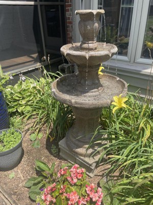 Works great. Easy to install and set up for summer. Some of the finish has chipped but it isn't heavy concrete so the benefits of being a painted plastic fountain outweigh the chipped finish. Enjoy the sound in my courtyard.