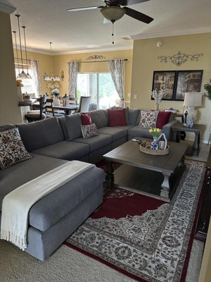We have a large, formal living room, and this piece anchors the room. It comes across as coastal casual.