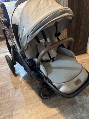 [This review was collected as part of a promotion.] I absolutely love this travel system, it has been a game changer for my growing family. Being a newer brand/ product on the market there are some cons, but overall this travel system has gone above and beyond my expectations. I’ve been using this system for over a month now and I’ve tried to be really critical in my review as travel systems are an expensive investment to make. I believe for me personally, that the pros outweigh all of the cons I’ve listed. Pros: - The car seat is very light weight - I love that the carrying handle can adjust to different levels - It took less than 5 mins to set up after removing from the box, crystal clear instructions - It’s very easy to click the baseless seat into the anchors, it also comes with anchor guides to place on the seat that make finding and attaching to the anchors seamless - I love the safety indicators on the car seat that show if the latches are fully hooked on (green is hooked, while red is not hooked) - I love the ability to single handedly flip the latches up after removing the car seat - The stroller lays very flat, even though it’s on the larger side, it isn’t very chunky and I can easily fit it and other things in my trunk. I was able to fit a Costco haul and the stroller in with room to spare - The stroller is very easy to control, I am able to steer it one handed and it turns where I want it to go smoothly - Lighter weight and easier to push than other popular double stroller brands - I love the many different seat configurations - The undercarriage basket can fit your entire grocery store haul, it is SO spacious - The brake system is well thought out, no more stuck brakes or getting your shoe dirty from trying to flip up the brakes on each wheel. You literally step on the brake once and the stroller is locked into place. Step on it one more time and it’s unlocked and ready to roll. It also has green/ red indicators that show if it’s locked or unlocked - I love the rubber coated wheels which work really well on all of the different terrains I’ve used it on. (Concrete, gravel, grass, dirt, uneven sidewalks). I’ve NEVER used a stroller that I can single handedly push with a fully loaded undercarriage, a newborn and a heavy toddler, uphill on grass with ease - It is so simple and quick to break down. It takes me less than 3 minutes to get both of my kids buckled in the car, remove the infant seat, remove/fold the toddler seat, and fold the stroller and get it into my trunk - The travel system is high quality and beautiful. Very stylish with the leather detailing and metal accents. I love the color combinations, I have the Dove gray color and it looks very high end- I wish they would make a hunter or olive green color - The price is very fair for how great of a travel system this is. I actually prefer it to the “nursery rhyme bird” stroller which was what I initially planned on getting. It is MUCH lighter in weight, smaller, easier to maneuver and way more affordable Cons: - The infant car seat straps don’t extend out very far even on the most extended setting, not an issue now with a newborn but could pose issues with a larger/ older baby - Sometimes when I go to tighten the harness straps I am unable to pull the string because it gets tangled in the back of the carseat - The car seat base does not always click into the stroller with ease, I’ve had to stand there for a few minutes and maneuver it around to get both sides in and latched, it would also be nice to have the green/red safety indicators like there is on the car seat to make sure it’s fully locked into place - I am not fond of the location of the release levers for removing the car seat from the stroller. They are in an awkward position and I can only imagine that as the baby gets heavier the harder it will be to remove the seat - I don’t love the buckles on the stroller seat, they always break off into multiple pieces and don’t always click into the buckle, especially when trying to buckle - Cannot use two infant car seats so it will not be beneficial for twins or parents with babies close in age that need to utilize two infant seats - My two year old won’t be comfortable for long as the seats are on the smaller side. She will probably only get another 6 months or so out of it before she’s too big. - I wish there was a way to fold the stroller with the seat in the front of the stroller but it can only be folded when placed in the top position