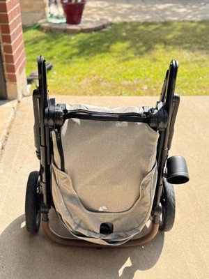 [This review was collected as part of a promotion.] We love this stroller so much it instantly became our daily go to due to the fact its so easy to fold and u fold and strap the baby quick.It fits pretty much anywhere because of its unique folding style.The materials used look and feel refined and very high quality my baby loving this stroller so I will keep using it until he can't fit in it no longer. Unfortunately he outgrew the car seat but it was the easiest car seat to install ever (took me less than 20 seconds) so massive plus for that ease of use! 5/5
