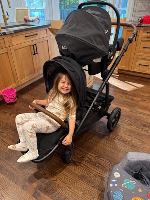[This review was collected as part of a promotion.] I’m so impressed by the new Joie single to double stroller! It’s lightweight and compact, but very durable for everyday use! I love how plush the fabrics feel and the leg rest on the main seat. The canopy has great extension to block out sun or wind. The tires are huge and fantastic for city walks and bumpy trails - can’t beat them! This set comes with the car seat and base which is so light but has all the great features including the large canopy! The stroller also comes with a cup holder and car seat adaptors. As far as aesthetics, you can beat this. It looks so luxurious - I love the leather handle bars. Also a big note is that you can adjust the placement of the handlebar to push, but you can’t adjust height, which is totally fine on me and my husband. I’m also very impressed with all the configurations you can do, including baby on top and toddler on bottom. I will be purchasing the extra shopping cart to add to this!