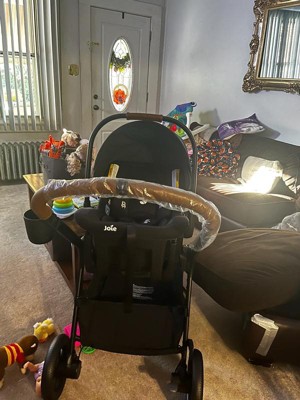 [This review was collected as part of a promotion.] Joie car seat is very lightweight I like the color. The material is so comfortable and soft. The stroller is amazing and gives a high end look with the leather handles. It is very easy to use and to fold. I also love that it comes with an attachment that gives more comfort on there backs. It also comes with a cup holder and a mini bag to add at the bottom for extra storage. The stroller rides very smoothly when walking on the side walk.