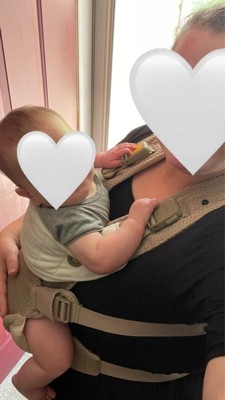 [This review was collected as part of a promotion.] I have to say I am actually so happy with this baby carrier. I got this carrier when my baby boy was about 4 months old, and I no longer felt comfortable using a wrap because he was heavy and my back hurt because of it. So I got this carrier and WOW it is so good! This carrier stays with me everywhere I go (the car, the house, the stroller, the airport). It has been such a life saver. Not only is it so easy to put on and adjust between my small frame and my husbands large frame, but it also is really nice to look at. The best parts about this carrier that I feel are so wonderful are the magnetic buckles (makes it so easy to click on and stay on); I also really appreciate the criss cross back straps. I think these straps are what save my back from falling apart. It feels really stable on my body and my baby loves to be in it. My baby is almost a year old now and I still use this on a daily basis. I also really like the bib that comes with it. it protects the carrier from spit and spit-up, and it also adds a sleeker finish to it. I also live in a very rainy and hot climate, so the privacy shield (not pictured but its under the bib) doubles as protection from the rain just as much as it protects from the sun. I have the black and cream color which I love because its neutral and doesn't ruin your outfit. I've actually gotten a lot of complements on it from new moms looking for an attractive front facing in and facing out carrier with a breathable material.