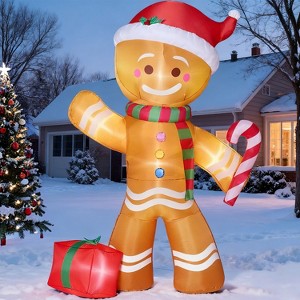 - ✨Standing at an impressive 8 feet tall, this charming gingerbread man inflatable becomes the centerpiece of your holiday decor.