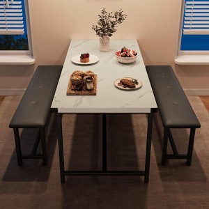 3 Piece Dining Table Set, Kitchen Table Set with 2 Upholstered Benches for 4, Dining Table with Bench, Kitchen Table Set for Small Space, Apartment, Studio, Office