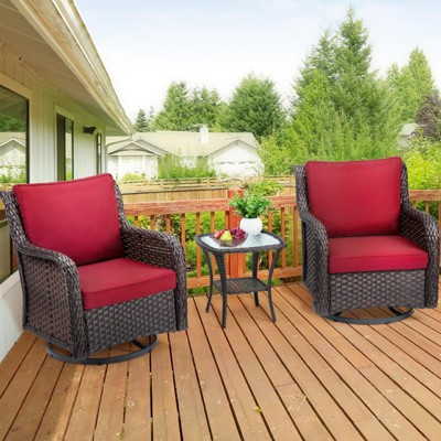 Jojoka 3-Piece Outdoor Swivel Rocking Chair Set with Side Table, High Back Wicker Glider Chairs, Comfortable Patio Furniture for Porch, Deck, Yard