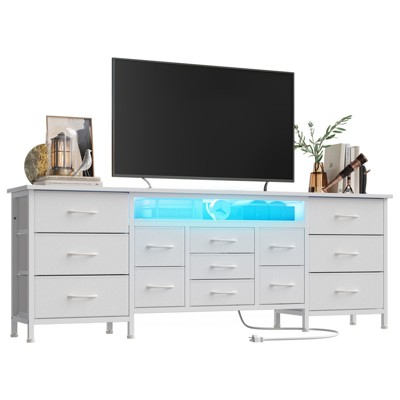 Jojoka 63" Storage Drawer Unit with 10 Fabric Drawers,Long Dresser Organizer with LED Light & Charging Station
