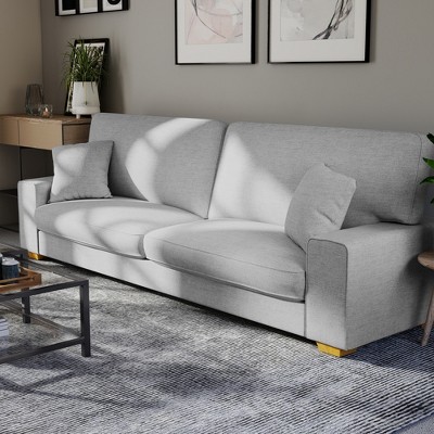 Jojoka 90" Loveseat Sofa, Chenille Upholstered Sofa with USB Charging Ports & Side Pockets, Wood Frame for Living Room, Bedroom, Beige
