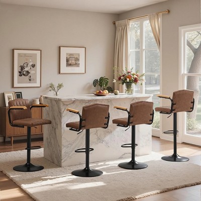 Bar Table and Chairs Set for 2, Semi-Circular Brown Wood Tabletop with Double Tier Rack, 2 Leather Upholstered Seats, Space-Saving Modern Bar Furniture for Home & Office