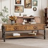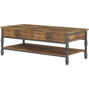 - Charming Rustic Design: This vintage coffee table features a rustic brown finish, elegant Roman column legs, and vintage black metal handles, adding a stylish touch to any living room, office, or reading room