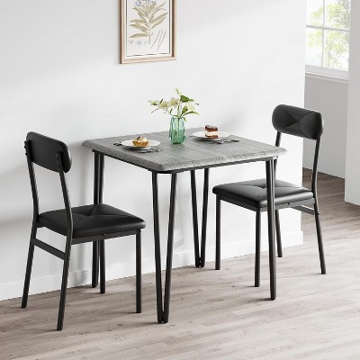 Jojoka Black Small Kitchen Table with Chairs for 2 with Upholstered Chairs