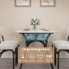 - 【Practical Dining Table with Built-in Storage Shelf】This versatile rectangular table features a lower storage shelf constructed from high-quality materials with a durable metal frame, providing convenient space for organizing dishes, glassware, or dining essentials. The firm , thick tabletop resists warping and maintains its shape over time, supported by four sturdy legs for reliable stability. Integrated non-slip rubber feet safeguard your flooring while ensuring firm placement during use.