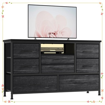Ample Storage Space: This 8-drawer dresser TV stand supports a 55-inch TV while providing generous storage with three drawer sizes, allowing for efficient organization of clothes, media, and accessories to keep your space clutter-free.