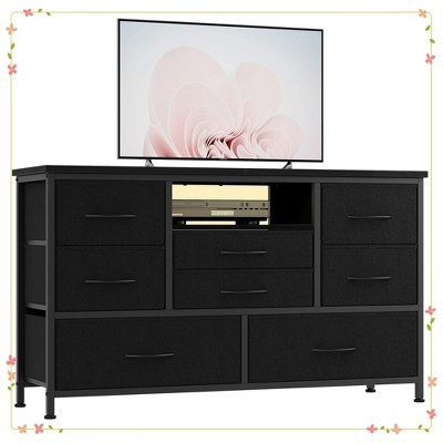 Jojoka Modern 8 Drawer Dresser in Elegant Black with Built-in Charging Station,Black