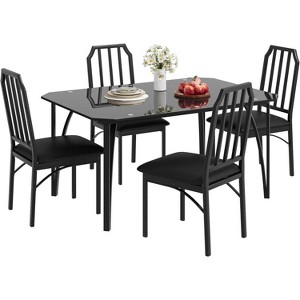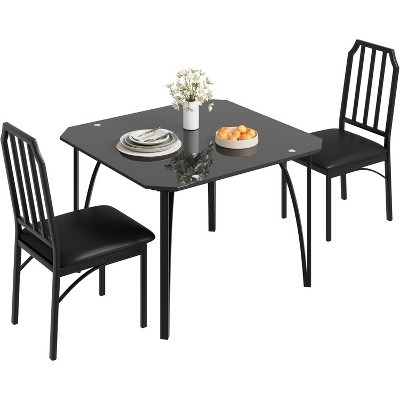 Jojoka Glass Dining Table Set for 2 with PU Cushioned Chairs, Angular Industrial Design, Space-Saving Kitchen Table and Chairs Set