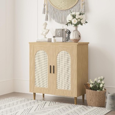 - [VERSATILE STYLE] This rattan buffet cabinet is a versatile piece that enhances various interior aesthetics. Its decorative rattan doors introduce a natural element to your space, allowing it to effortlessly blend with different design styles. Elevate your room's ambiance with this unique cabinet that exudes timeless appeal and sophistication.