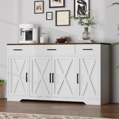 - [ADJUSTABLE DESIGN] Experience customizable organization with the sideboard buffet cabinet’s adjustable shelves, which offer three height positions to suit your storage needs. An integrated reliable anti-tip mechanism ensures optimal stability and safety, making this piece both practical and sophisticated.
