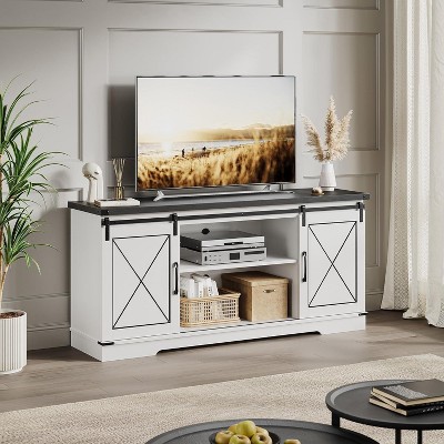 Sleek & Functional Design: This TV stand with adjustable shelves features semi-open double doors and grooved wood details, blending contemporary style with practicality. Its clean lines and finish make it a perfect addition to any living room or bedroom decor
