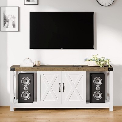 • Sleek & Functional Design: This TV stand with adjustable shelves features semi-open double doors and grooved wood details, blending contemporary style with practicality. Its clean lines and finish make it a perfect addition to any living room or bedroom decor