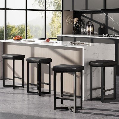 Jojoka Swivel Bar Stools Set of 4, 24" Counter Height Bar Stools with Footrest, Pu Leather Backless for Dining Room,Black