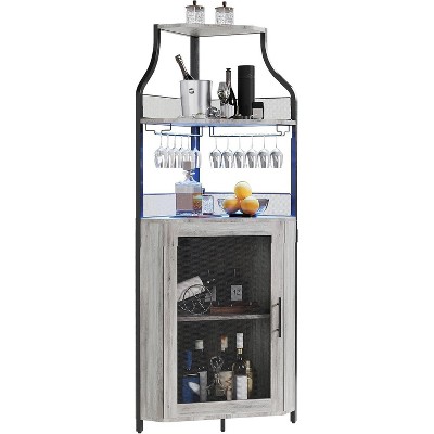 Jojoka Wine Bar Cabinet with Led Light, Liquor Cabinet with Wine and Glass Rack, Buffet Sideboard with Storage,Gray