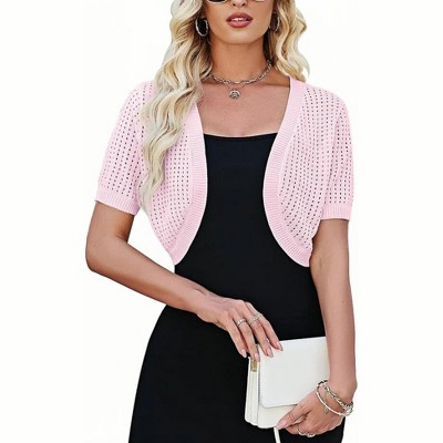 - Material: This short-sleeve cardigan is crafted from cable-knit fabric that is soft, stretchy, skin-friendly, moisture-wicking, and breathable, ensuring all-day comfort.