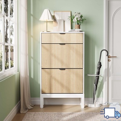 Upgrade your entryway or hallway with this drawer wooden shoe cabinet, designed to combine elegance, functionality, and safety. Its clean lines and warm tones complement any home decor, while hidden flip drawers provide practical storage for shoes.