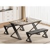 Jojoka Z-Shaped Leg Kitchen Table Set with 2 Upholstered Benches Dining Table Set for 4, , 3 Piece Dining Table Set for Kitchen