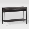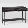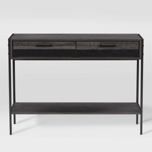 Add a splash of personality to your entryway or hallway or living room - a perfect addition to your space. Paired with an open shelf to display your favorite décor and accessories, this entryway console table with two sliding drawers keeps your out-the-door essentials tidy and organized. Duotone design paired with a sleek black legs is the ideal piece to complete your space.
