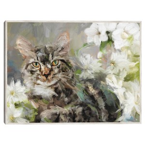 Bring the beauty of nature indoors with our framed canvas print featuring a tabby cat lounging amidst delicate white flowers. Printed on only top-quality canvas with first-rate technology, every brushstroke is distinctive and defined. Plus, with printing that covers the expanse of the canvas, framing is unnecessary and hanging your new artwork is a cinch