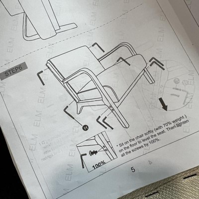 [This review was collected as part of a promotion.] In the box: Very well packaged with empty boxes put in to keep the chair from shifting. The legs are bubble wrapped and screwed to a board, which you won't need, to keep them from getting scratched. Everything is well secured. Out of the box: I laid all pieces out and that's when I realized that the board the legs were attached to wasn't needed. The instructions seemed to be simple, however, in the instructions it told you to remove the armrest from the panel, but it didn't tell you to also remove the metal pieces that were in the arms. I didn't realize it until I tried to put screws in the holes, and they wouldn't go in. It took me a little bit to realize that they needed to come out. The chair is nice but I would want to use it in a sunroom or a screened in porch. It sets low to the ground, but isn't as comfy as a living room chair would be. I also notices that one of the legs was not glued exactly even, but it isn't really noticeable. I just noticed it when I was putting it together. The cushion is rather firm and I like that it comes with a separate pillow. It looks really modern in my not so modern living room, but I will definitely use it. I have it in a sitting room now, but I want to get a house with a sunroom and this will look great in it. It comes with everything needed to put together. No extra tools needed. Be careful when putting in caps that go into the screw holes to cover the screws. They bend easily and are harder to put in if you crease them.