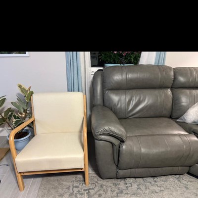 [This review was collected as part of a promotion.] This a very beautiful and comfortable chair. It is very stylish and it is a fabulous addition to my living room. It is retro-modern with very comfortable cushions. The cushions are a neutral color so it fits right in for any room. The solid oak wood frame is very sturdy. Very premium material was used to make this chair.