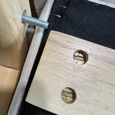 There is no way to attach the cross piece in the last assembly step. It seems the piece uses an ikea like method to tighten the bolts but the bolts included are not for this and the instructions do not mention this. You absolutely cannot tighten these! Target- I am very disappointed that you seek such a low quality item.