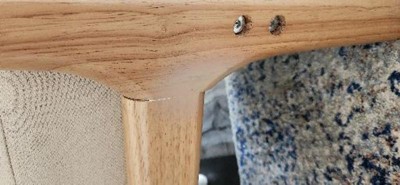 I like the look of the chair, the wood arms feel incredibly sturdy. However, the cushions themselves don’t feel super solid and my big issue is that the chair sits SUPER low to the ground. My knees (5’ 10”) are almost at the top of the back of the chair. Unfortunately going to have to return because of that. Picture for size reference in comparison to our sectional.
