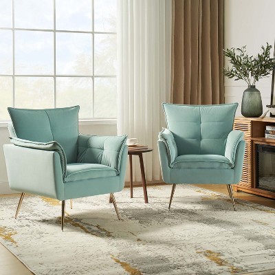 Jonat Contemporary Velvet Tufted Wooden Upholstered Armchair with Metal Legs for Bedroom and Living Room| ART OF LIVING DESIGNS-SAGE
