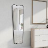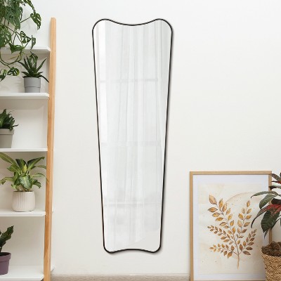The classic curves of this modern dressing mirror add an Art Deco vibe to any space. This versatile wall-hung or wall-leaning design is strengthened by a narrow metal frame. Its vertical orientation is ideal for a closet, bedroom or entry area.