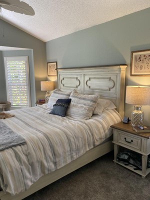We love the scale and color of these lamps. Will need to buy new bulbs because the ones provided are very bright for a bedroom.
