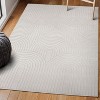 This modern, geometric rug pattern is inspired by Art Deco and midcentury designs. Woven from plush polyester, it has an all-over pattern of striped arches and a two-tone color scheme; a high-low pile accentuates the pattern. It's a bold modern statement for the bedroom, living room or dining room. Please note that variations in the rug's appearance may occur when the fibers are brushed due to natural light reflection and weaving characteristics.