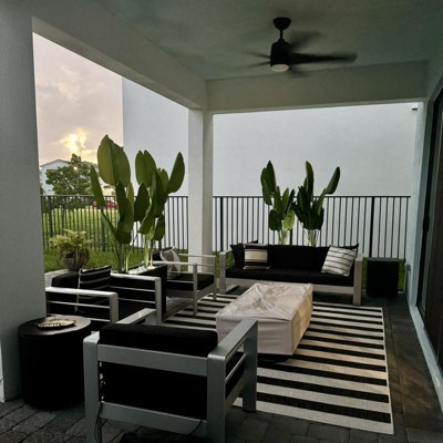 I bought the black and white rug for my balcony and it's perfect. Great quality and perfect for outside. highly recommend.