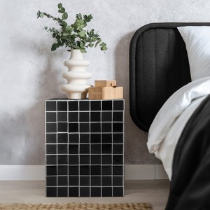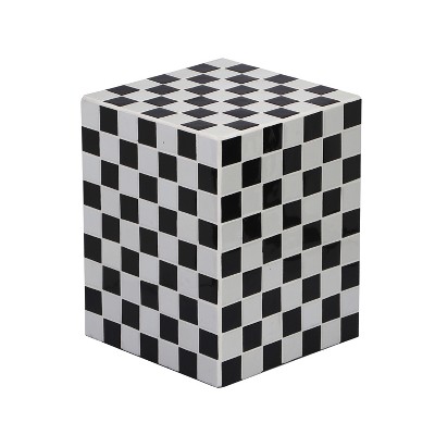 Embrace Maximalism with our modern, Bohemian-chic checkerboard accent table. The sturdy MDF cube is finished with 2" ceramic tiles. Use this versatile accent as a nightstand, or a pedestal for your favorite plant.