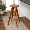 Our mid-century style wooden bar stool features a sleek round seat and angled legs for stability and style. The solid hardwood frame is built to last. This versatile modern bar stool is perfect for a farmhouse kitchen island or casual-style bar.