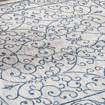 We absolutely love this rug and its color. It’s even prettier in person. The blue is beautiful. I may order another one for our lower deck.