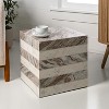 Our natural marble cube table is a classic mid-century, minimalist design that fits into almost any modern space. Each one-of-a-kind table has a natural marble surface with unique patterns. The small size fits neatly beside a chair, and you can line up two or three as cocktail tables.