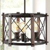 This round pendant light is ideal for your modern farmhouse, rustic kitchen or industrial interior design. Features three Edison-style LED bulbs inside a black diamond-patterned basket shade, accented with a barnwood finish. This large pendant is perfect over a small kitchen or dining table, or hang two over a kitchen island.
