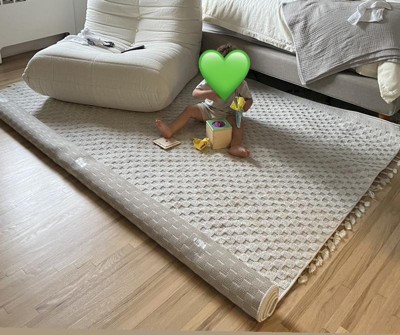 Don’t sleep on this rug if you’re looking for a neutral colored checkered rug. I hesitated because there were no reviews but it’s actually really nice. I didn’t end up keeping because it was not the right color for my space. It’s more of a cool grey and I need something warm. But nice texture, and on the thinner side which is what I wanted- just didn’t match my color scheme.