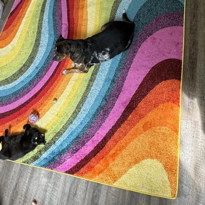 Inspired by the bold patterns of mid-century rugs, this colorful rug has a groovy, retro vibe. The busy abstract striped pattern makes it perfect for modern homes with kids and pets. It's the perfect accent for a Bohemian, mid-century or contemporary living room, dining room, bedroom or home office.